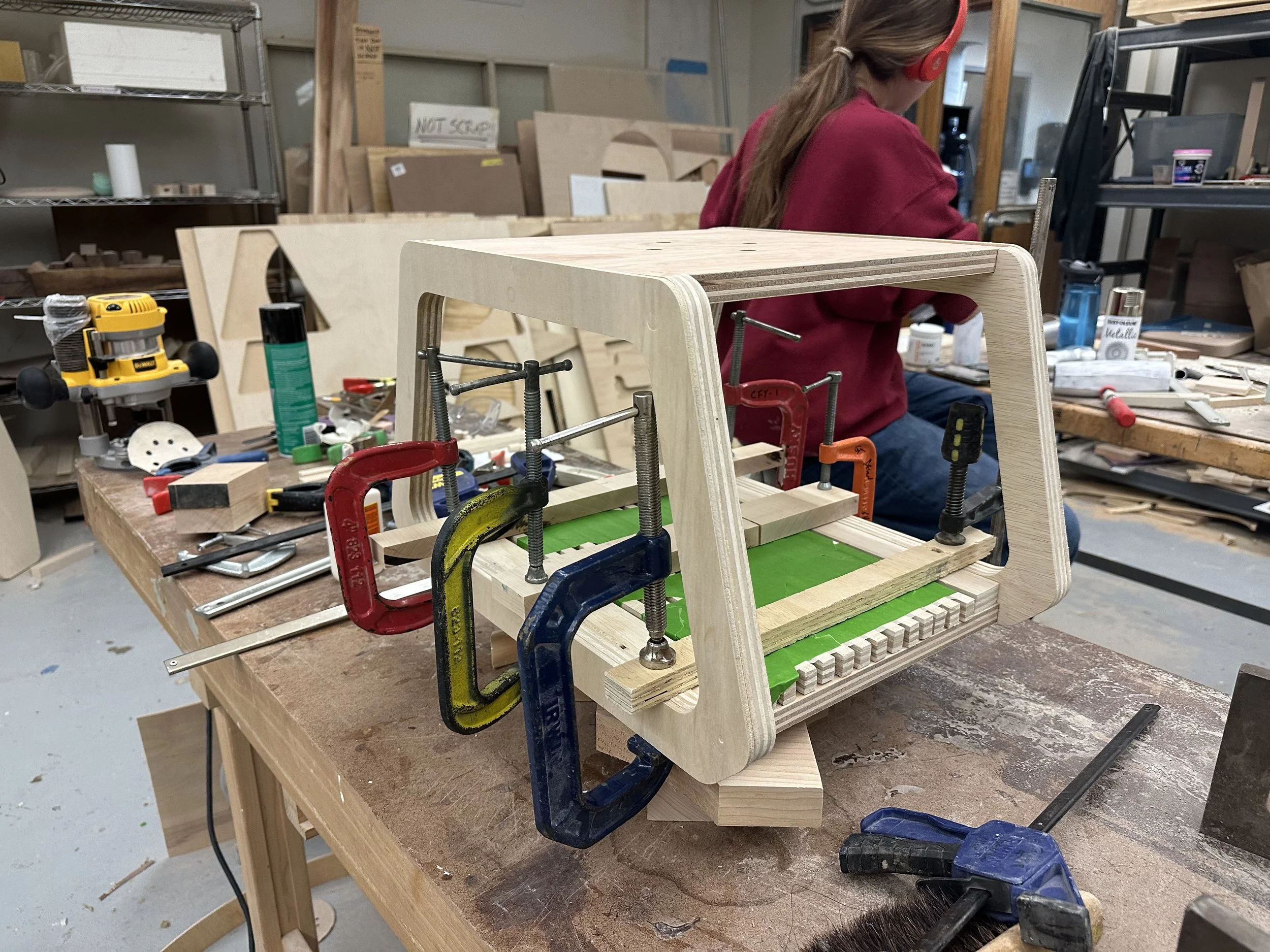 The stool project was an exciting opportunity to explore the world of furniture design and improve craftsmanship abilities. Mid-century modern furniture and architecture acted as aesthetic and form inspiration. After establishing design language, it was important to establish the stool’s intended market. This stool is for young creatives with small spaces but plenty of personality. It was important that the stool satisfied multiple functions to maximize the small space that my consumer has to work with. Folio is a beautiful footrest that is both a place to sit and a magazine organizer.